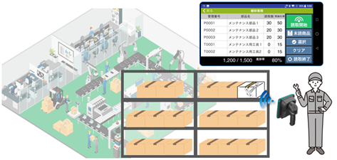 「RF異物検知」は、RFID技術を用いて出荷物を開封することなく、外から備品の同梱状況を把握できることに加え、シンプルな棚卸機能も実装することで、備品のみの棚卸も可能としました。