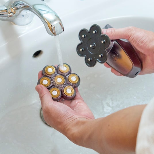 マグネット着脱式のシェービングヘッドを採用。ヘッドをすばやく着脱・分解でき、水洗いが可能。手間のかかるお手入れもかんたんで、清潔に使えます。 ※ANC-B01は除く