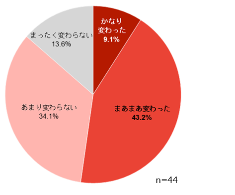 将来の「進学へ」の意識について、「熊本学習支援センター」に通う前と現在とで、「かなり変わった」9.1%、「まあまあ変わった」43.2%と、合わせて52.3%が進学の意識が変わったと回答しました。