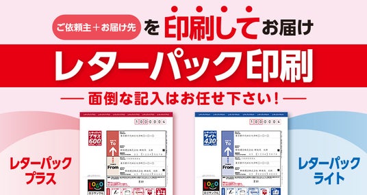 レターパック印刷サービスは、お届け先やご依頼主欄に印刷(印字)されたレターパックを100枚単位でお届けするサービスを開始。