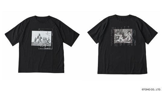 (左)T-SHIRT 七人の侍 フォト・台本 1(七人) COLOR : BLACK / PRICE : ¥24,750 (右)T-SHIRT 七人の侍 フォト・台本 2(旗を作る) COLOR : BLACK / PRICE : ¥24,750 *展開商品の一部です