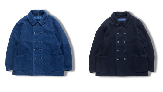 (左)ISETAN EXCLUSIVE KENDO FRENCH DOUBLE JACKRT CUSTOM COLOR : BLUE / PRICE : ¥385,000 (右)ISETAN EXCLUSIVE KENDO FRENCH DOUBLE JACKRT CUSTOM COLOR : DARK NAVY / PRICE : ¥385,000