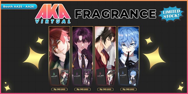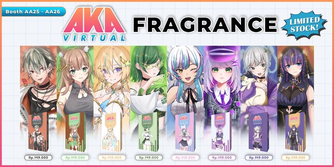 2023年12月17日 - AKA Virtual (読み方:エイケイエイバーチャル、本社:東京都港区、代表取締役:シェン・ジア)は、『COMIFURO 17』というインドネシアで開かれる大規模コミックイベントにおいて、2023年12月16日~12月17日に出展をいたします。AKA Virtualに所属する、インドネシア語圏で活躍中のタレント21名全員のキャラクターを象徴するような香水を、先着順で会場販売いたします。価格は30mlのボトルのもので、149,000ルピアでのご提供です。