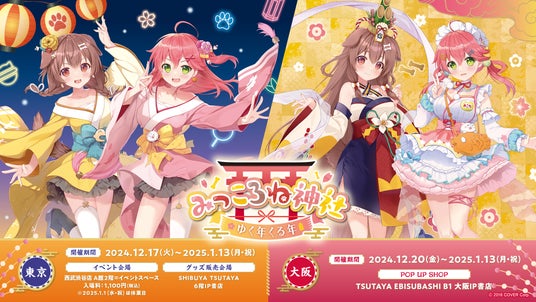 「ホロライブプロダクション」所属の大人気VTuberである「さくらみこ」と「戌神ころね」による人気コンビ「みっころね」が、SHIBUYA TSUTAYA と西武渋谷店で体験型イベント「みっころね神社 ゆく年くる年」が開催中!