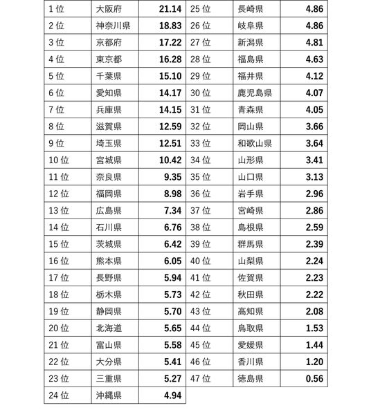 また、上位に位置する都道府県は通勤や観光などで人の流入が多い地域であるため、今回の結果以上に車室数の供給が不足している可能性も否定できません。