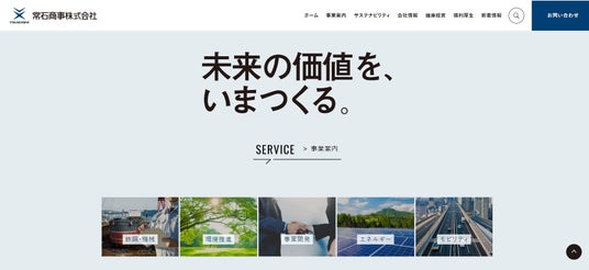 新たに公開されるウェブサイトは、常石グループの総合商社として幅広い分野でビジネスを展開していく常石商事がどのような会社か、新たな部門の可能性の広がりと未来への期待感をステークホルダーに伝えることができるよう、合併する3社のウェブサイト内データを分析し、リクルーター視点で構成・デザインしています。
