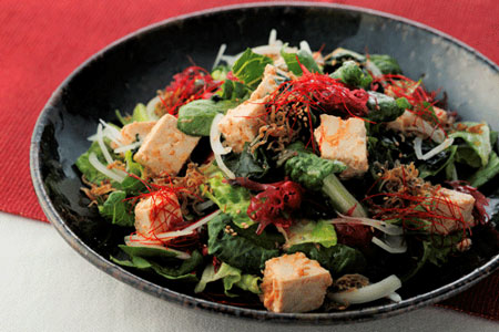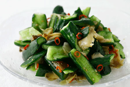 胡瓜にごま油が香る塩だれをからめ、唐辛子でピリっと辛いサラダに仕上げました。ザーサイの食感がアクセントになっていてお酒のおつまみにもぴったりです。