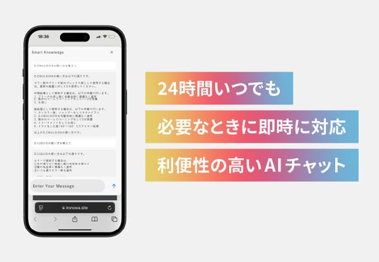 「Smart Knowledge(TM)︎」は当社のプロ向け美容商材「IRONOWA」ブランドサイト内で、24時間いつでも当社製品に関するご質問にお答えします。