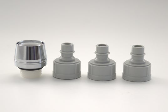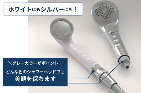市場が変化したことにより「シャワーヘッドの付け替えをもっと手軽に」という需要が増加すると見込み、今回9年ぶりにリニューアルし再販する運びとなりました。カラーデザインを一新し、より多くのシャワーヘッドにあうようグレーに変更。多様なシャワーヘッド、お風呂場の景観にぴったりと馴染みます。