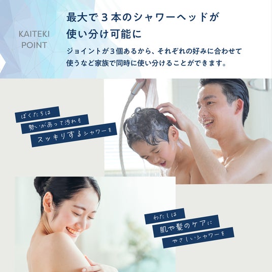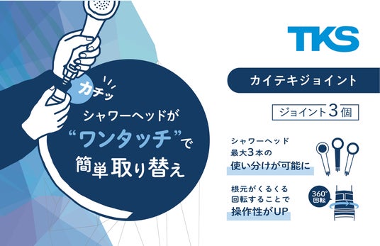 この度、2024年5月23日(木)に最大3つのシャワーヘッドを“ワンタッチ”で簡単に取り替えができる便利グッズ「カイテキジョイント」を発売することをお知らせいたします。当社は、シャワーヘッドは「選ぶ時代」となり現代に浸透したと考えています。今後はさらに「使い分ける」時代になると見込み、新たな時代への提案を目指し、今秋に目的別のシャワーヘッドを3種類発売予定です。使い分ける時代に先駆けた製品ラインナップを展開する第一弾として、簡単にシャワーヘッドを取り替えることができる本製品を発売いたします。