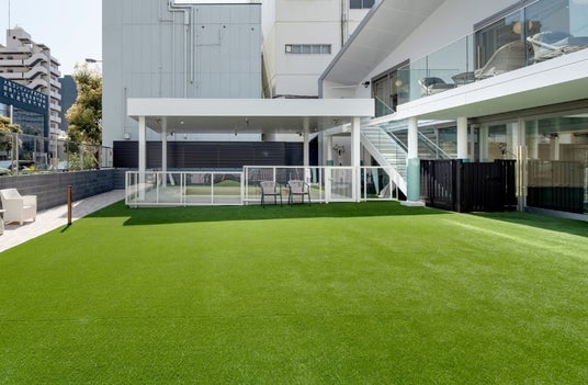 Dyplus OSAKA KITAは、「Design Your Plus One ー飼い主さまとペットとのライフスタイルをプラスにする」をコンセプトに、飼い主さまとペットの“ココロにプラス”をお届けする新しいライフスタイルの施設。ラグジュアリーなドッグホテル、日中預かり保育、送迎サービス、そして屋上ドッグラン、カフェなどさまざまなサービスを提供しています。屋上ドッグランでは、広々とした芝生で特別なひとときを楽しめます。