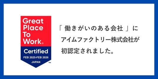 IT/Webエンジニアに特化した人材ビジネスを手掛けるアイムファクトリー株式会社(本社:東京都港区赤坂、代表:久利 可奈恵)は、Great Place to Work(R) Institute Japan (以下、GPTW Japan) の実施する「働きがいのある会社」認定において、初めて「働きがい認定企業」として認定されたことをお知らせいたします。