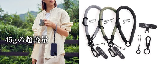 【BZGLAM(ビズグラム)】アウトドアシリーズよりリリース中の、スマートフォンやコンパクトカメラなどをスタイリッシュに持ち歩ける「スマートフォン・ストラップ」。