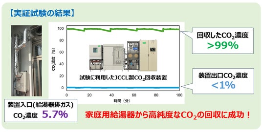 CO2分離回収技術の社会実装を進める株式会社JCCL(本社:福岡県福岡市、代表取締役:梅原俊志、以下「JCCL」)は、家庭用給湯器からのCO2回収に世界で初めて成功(※JCCL調べ)しましたので、お知らせいたします。