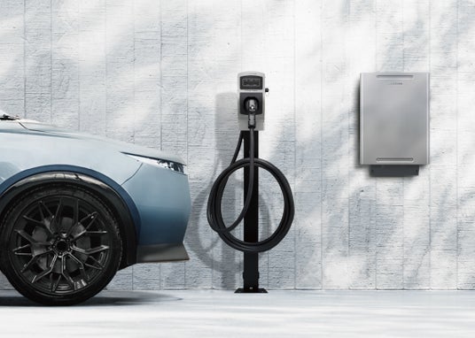 V2Hとは「Vehicle to Home」の略で、電気自動車(EV/PHEV)に充電、電気自動車の電気を家庭に放電できるシステムです。災害時の非常用電源としての活用の他、太陽光発電と組合せてカーボンニュートラルな生活の実現が可能となります。