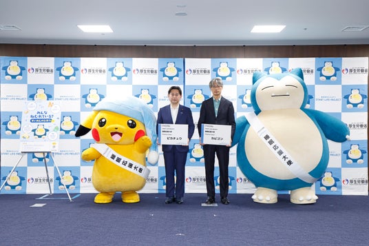 『Pokémon Sleep』では、厚生労働省とともに、昨年2024年から睡眠ガイドのリーフレットの制作、 健康増進普及月間イベントへの参加を行ってきました。その中で、特に若年層に対し、いかに睡眠の重要性を意識していただくかが課題であると感じました。こうした課題意識のもと、今後も厚生労働省と共に楽しく睡眠を啓蒙していくため、このたび「スマート・ライフ・プロジェクト」において、ナイト キャップをかぶったピカチュウ・カビゴンが「睡眠応援大使」に就任することとなりました。