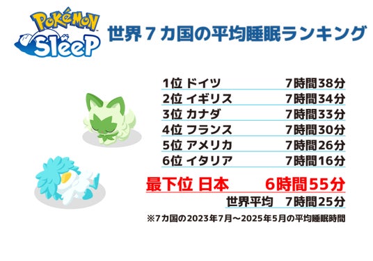 私たちポケモンはエンターテインメントの力で日常生活を豊かなものにしたいという思いから、サー ビスの一つとして、”眠る”をテーマにした『Pokémon Sleep』を提供してきました。睡眠は心身の健康 の基盤でありながらも、忙しい現代社会の中ではその重要性が十分に意識されづらく、特に日本は全世 界の中でも平均睡眠時間が最も短い国の一つとされています。