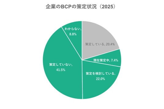 2025年においても企業のBCP策定状況は、全体の約80%は定まっていないと言える状況です。