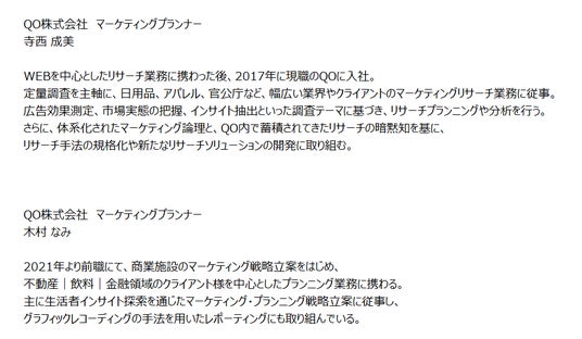QO公式noteでは、生活者見立て通信の執筆にあたってのこぼれ話をご紹介しています。QOのプランナーがめぐらせた思考過程や苦労したこと、「見立て」をつくるコツなどざっくばらんにお届けしています。あわせてご覧いただけましたら幸いです。