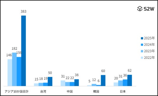 ※分析対象期間:2022-2025年、2025年は1月~10月。アジア10か国は2024年GDPランキング基準で選定。ソース:S2W QUAXAR