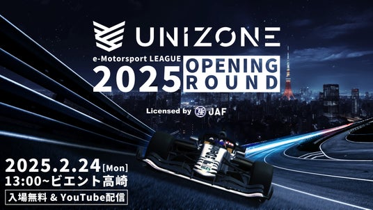 国内で唯一JAF(日本自動車連盟)の公認を受けたeモータースポーツ大会(レーシングゲームを使用したeスポーツ大会)「UNIZONE(ユニゾーン)」を運営する一般社団法人日本eモータースポーツ機構(東京都千代田区、代表理事:出井宏明、以下「JeMO」)は、2025年2月に開幕する「UNIZONE」の開幕日時が2025年2月24日(祝)に決定しましたのでお知らせします。当日はレースの他、シミュレーター体験のブース設置、各チームの代表者によるトークセッションや抽選会など、様々なプログラムをご用意しております。レースの様子などはUNIZONE公式YouTubeチャンネルでもライブ配信します。