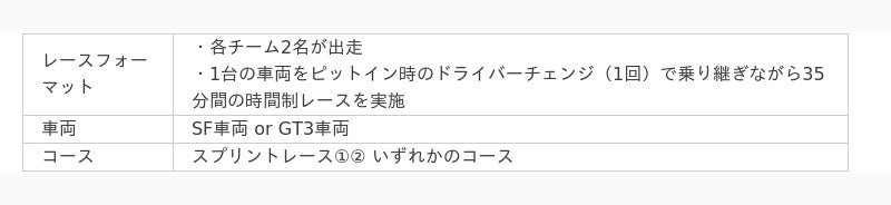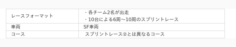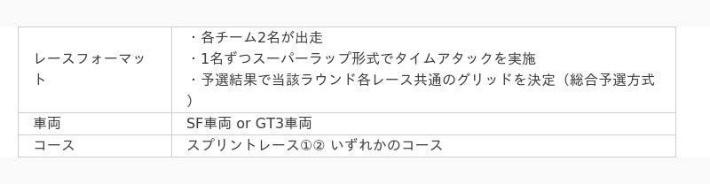競技フォーマットに則り、各チームより選手を選出し、予選タイムアタック、スプリントレース、セミ耐久レースをチーム対抗戦で実施します。