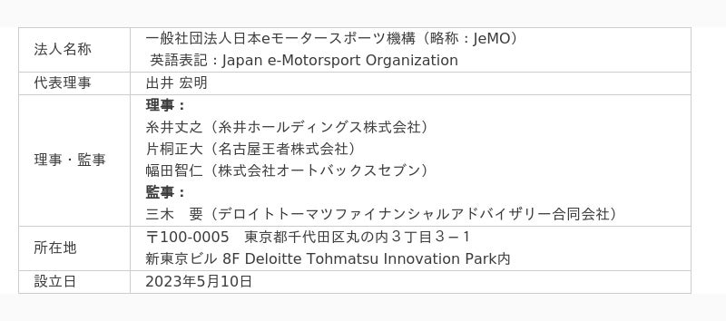 一般社団法人日本eモータースポーツ機構(JeMO)法人概要