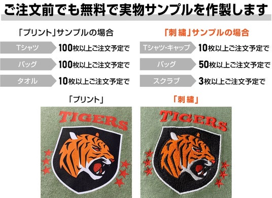 これまで実物サンプルはプリント加工に限定したサービスでしたが、新たに8月15日より刺繍加工においても、実物サンプルを作成することが可能となりました。