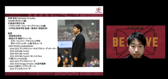株式会社Asian Bridge(所在地:東京都港区/石川県金沢市/富山県富山市、代表取締役:小西 広恭)は、Bリーグ川崎ブレイブサンダースのアシスタントコーチである宮崎哲郎さんを招いて、バスケットボールのユース年代の育成に関わる全国の指導者のみなさまに向けて有益な情報をお届けするオンラインセミナー(以下「本セミナー」)を2023年12月26日(火)に実施いたしました。本セミナーにはバスケットボール関係者のみならず様々な競技の関係者が参加し、ディスカッションの時間では宮崎さんにお話ししていただいた内容を題材に大変盛り上がりました。
