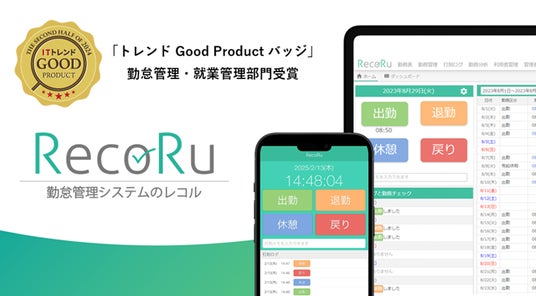 中央システム株式会社(本社:東京都新宿区、代表取締役社長:本間 匡、以下中央システム)が提供するクラウド勤怠管理システム「RecoRu(レコル)」は、株式会社Innovation & Co.(本社:東京都渋谷区、代表取締役社長:齊藤 和馬)が提供する法人向けIT製品・サービスの比較サイト「ITトレンド」が発表するGood Productバッジを勤怠管理・就業管理 部門で受賞したことをお知らせします。