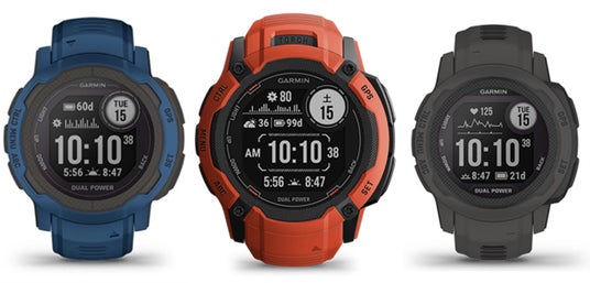 「Instinct 2」シリーズビッグフェイスモデルの2Xは登山でも役立つLEDフラッシュライト搭載。ソーラー充電対応Dual Powerモデル、ミリタリー機能を備えたTactical Edition、タイドグラフ搭載のSurf Editionもラインナップ。
