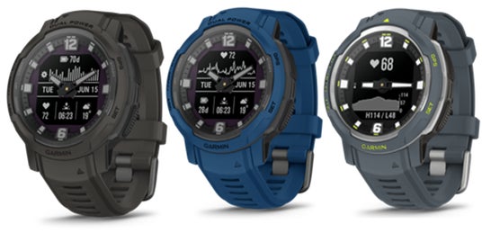 「Instinct crossover」シリーズ「Instinct 2」のハイスペック機能はそのままに、ウォッチフェイスにアナログ時計を組み込んだハイブリッドモデル。外衝撃による時計の針のズレを検出し、GPSで今いる場所の標準時刻に自動補正する独自機能RevoDriveを搭載。