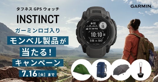 アメリカ発データ活用のプロフェッショナル、ガーミンジャパン株式会社(以下 Garmin)は、アウトドアGPSウォッチ「Instinct(インスティンクト)」シリーズの購入で、アウトドアブランドmont-bell(モンベル)の登山用アイテムを抽選でプレゼントするキャンペーンを2024年7月16日(火)まで開催中です。
