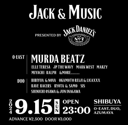 ブラウンフォーマンジャパン株式会社(本社:東京都港区、代表取締役社長:アーロン・J・マーティン)は、2024年9月15日(日)、テネシーウスイキーの代表ブランドとして世界中で愛され150年以上の歴史を持つ「ジャックダニエル」の一夜限りのミュージックイベント、『Jack & Music』を東京・渋谷で開催いたします。