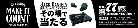 『Jack & Music』開催に合わせて、9月9日(金)10:00より11月30日(土)23:59まで、ジャックダニエルオリジナルミュージックアイテムが総計77名様に当たるキャンペーンを全国で実施します。