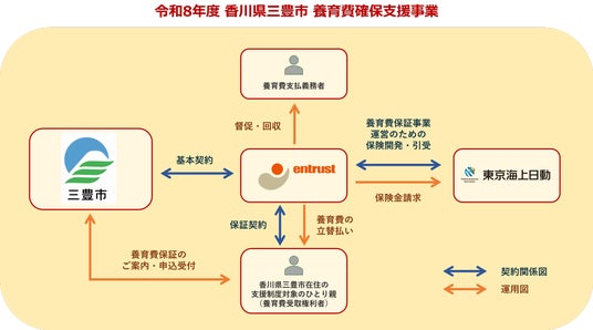 株式会社イントラスト(本社:東京都千代田区、代表取締役社長:桑原 豊、以下「イントラスト」)は、東京海上日動火災保険株式会社(本社:東京都千代田区、取締役社長:城田 宏明、以下「東京海上日動」)と開発を進めていた自治体向け養育費保証モデルについて、この度、香川県三豊市(市長:山下 昭史、以下「三豊市」)に採用され、2026年4月1日より運用を開始いたしました。四国圏での導入は、同市が初となります。