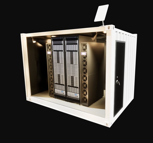 今回発表したのは10ftタイプと12ftタイプのコンテナDCです。どちらも設置場所を選ばないコンパクトな仕様でありながら、高密度のGPUサーバが稼働可能で生成AIの推論用の計算ノード向けに設計されています。