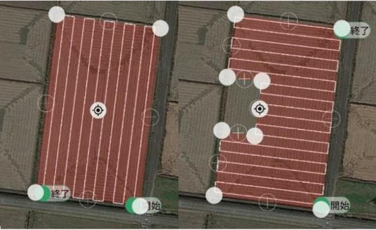 送信機の画面で飛行範囲を設定するだけで自動航行が可能です。養鶏場や牛舎など、広範囲のエリアを効率的に対策できます。
