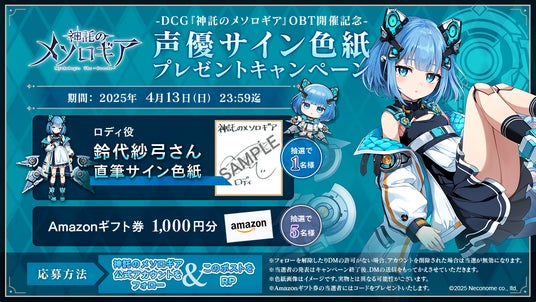 『神託のメソロギア』に出演する豪華声優陣の直筆サイン色紙や、Amazonギフト券1,000円分が抽選で当たるチャンスです。