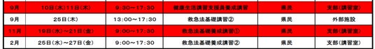 令和7年度 日赤神奈川県支部 救急法等講習予定表