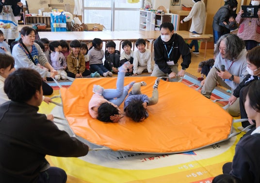 そこで、どこでも想定震度を体感できるマット「YURETA」や、減災紙芝居「がたぐら」などの教材を導入。強い揺れの中でも周囲の危険を確認しながら逃げる「カエル」や「トカゲ」のポーズなど、実災害で本当に使える回避技術を学びます。