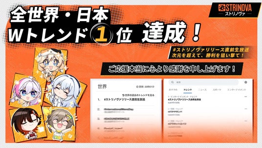 皆様からの温かいご支援のもと、同時視聴者数は60,000人を突破し、配信は日本のXトレンドおよび世界トレンドで1位獲得を達成しました。