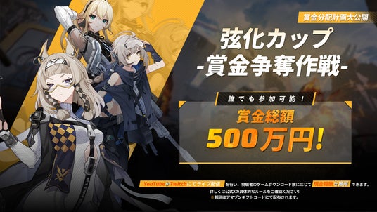 正式サービス開始を記念して、実況者や配信者向けに総額500万円の賞金が用意された特別企画「弦化カップ~賞金争奪作戦~」の開催が決定しました。