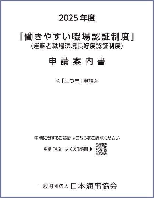 一般財団法人日本海事協会(ClassNK)は、「働きやすい職場認証制度」三つ星の2025年度以降の申請に関して、以下のとおり受け付けることを確定いたしました。