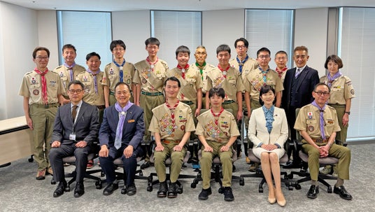 一般社団法人 日本ボーイスカウト東京連盟世田谷地区は、教育プログラムの「富士スカウト章」「隼スカウト章」「菊スカウト章」に進級したスカウトによる世田谷区長への表敬訪問を3月26日に実施しました。