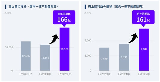 主力事業である一棟収益不動産販売事業も、2Qで売上185億円(前年同期比166%)・売上総利益28.8億円(同161%)を達成し、成長率は昨年を大きく上回っています。