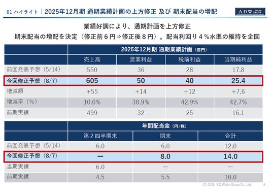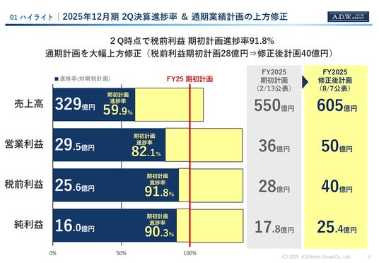 株式会社ADワークスグループ(東証プライム:2982、所在地:東京都千代田区、代表者:代表取締役社長CEO田中秀夫、以下「ADWG」) は、2025年12月期 第2四半期の連結決算を発表しました。