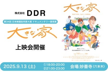株式会社DDR(本社:東京都港区、代表取締役社長:的場令紋)は、児童養護施設をテーマにしたドキュメンタリー映画『大きな家』の上映会を開催します。