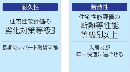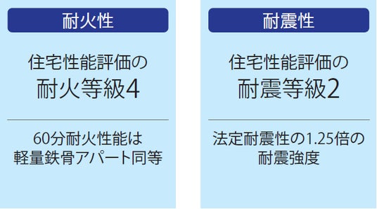 ます。複層ガラスや宅配ボックスなどをが導入しされており、機能性とデザイン性を兼ね備えた仕様となっています。木造でありながら、高性能住宅として、耐久性、断熱性、耐火性、耐震性等、木造でありながら複数の住宅性能評価を取得しています。