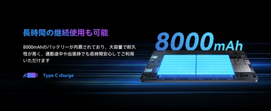 内蔵された 8000mAh の大容量バッテリーは、耐久性に優れています。通勤途中や出張時など、長時間の利用シーンでも安心してご使用いただけます。充電には Type-C 充電方式を採用し、利便性も向上。長時間の継続使用をサポートし、バッテリー切れの不安を軽減 。